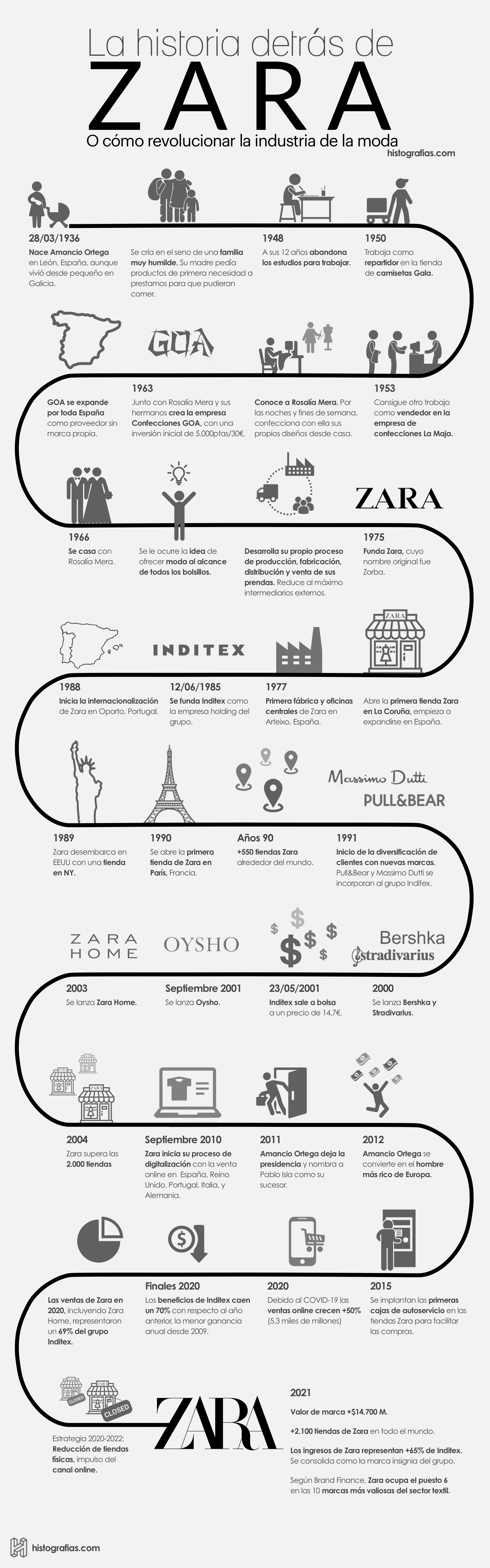 Conoce a través de esta infografía la historia detrás de Zara y su fundador Amancio Ortega.