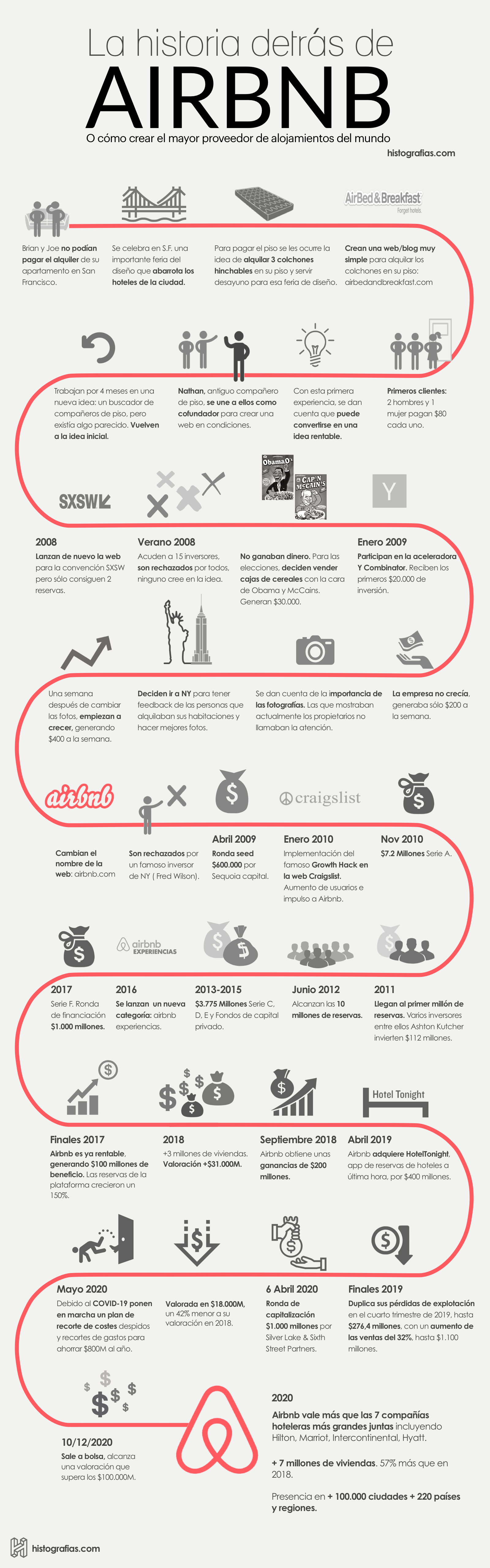 Conoce a través de esta infografía la historia detrás de Airbnb y sus fundadores Chesky, Gebbia y Nathan. Quienes tras 12 años construyendo el imperio de alojamientos, estuvieron a punto de perderlo todo en cuestión de semanas debido al Covid-19.