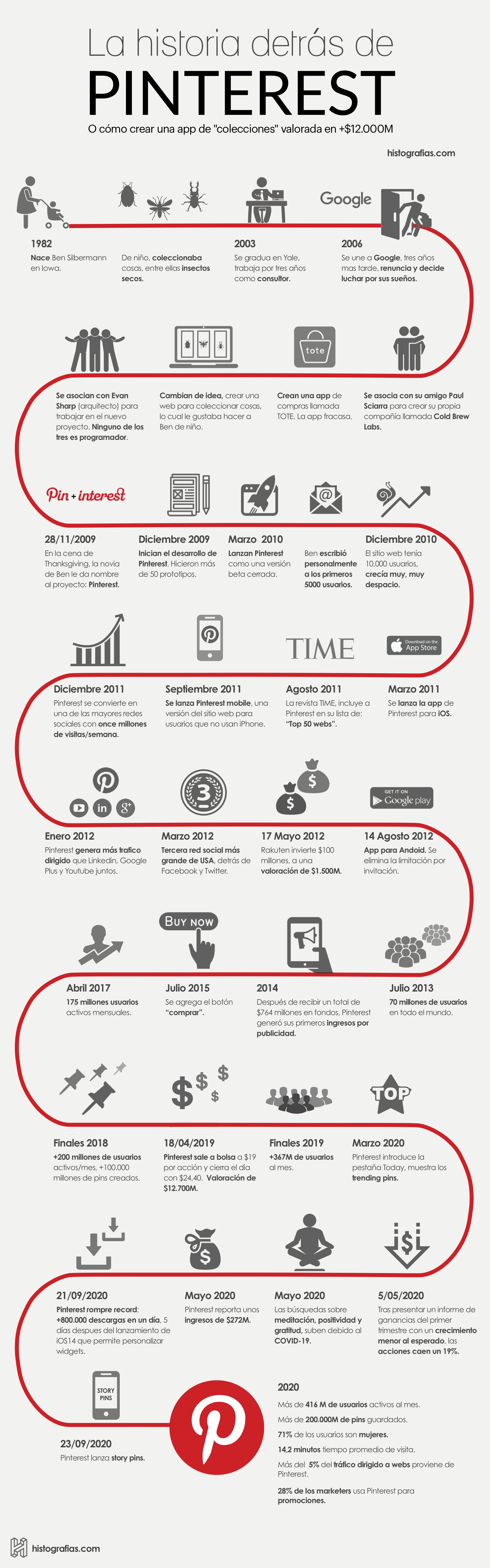 Conoce a través de esta infografía la historia de Pinterest, que cuenta con +416 millones de usuarios y cuya valoración actual supera los $12.000 millones